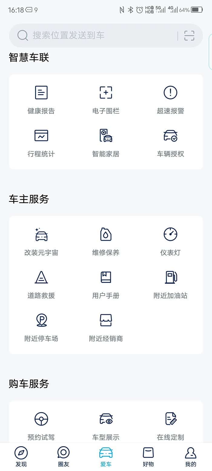 车主服务部分主要是一些常用功能、保养手册、用户手册的内容,这部分往往被车主直接忽视的,其实这对新车主的快速上手非常有帮助!维修保养模块可以在直接APP上预约维修或者保养,可以精确到几点哪家4S店,还有非常全面的保养计划和保养手册。用户手册里面有非常详细的用车技巧,有文字和视频两种方式方便你快速上手你的新车。其他的功能也是非常有帮助。