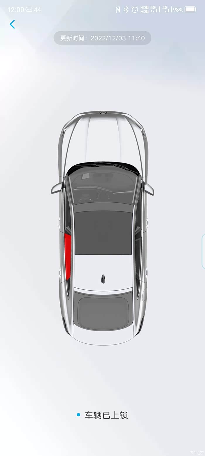 进去APP的爱车界面,最上面的信息分别是剩余续航、闪灯、闪灯鸣笛、解锁、上锁这些功能,最大的一个功能提醒是右上角的车辆小图标,如果车辆窗户忘记关、天窗忘记关、车辆未上锁都会有小红点提示,点进去就可以看到具体的哪个窗户未关或者其他车辆的状况。解锁、上锁功能需要用到安全码,可以不用钥匙就能解锁和上锁,有时钥匙不在身上想要在车上拿东西就方便了。闪灯鸣笛功能可以方便你去停车场时找不到爱车时使用,快速精准的找到车辆!
