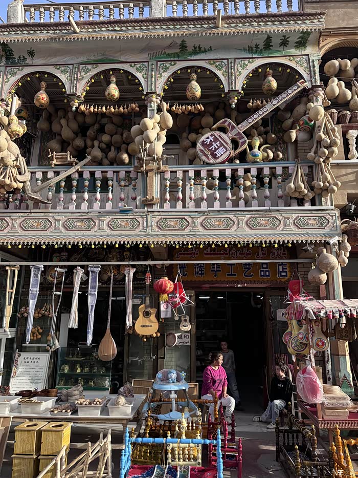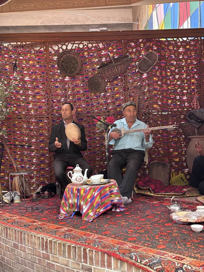 喀赞其特色老街,穿梭于民族特色的建筑之间,这里有漂亮的挂毯、精美的艾德莱斯丝绸、各种精美叫不上名字的乐器、自己手工制作木质工艺品和铜制餐具……静静的聆听民间音乐人的现场弹唱,感觉太棒了!