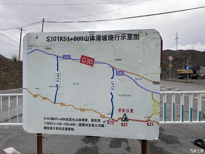 好巧不巧,走了一会儿后S101提示有路段发生山体滑坡需要绕行,行程刚开始就遇到这情况属实有点无奈……但看到后面的景色,嗯……值得一绕!