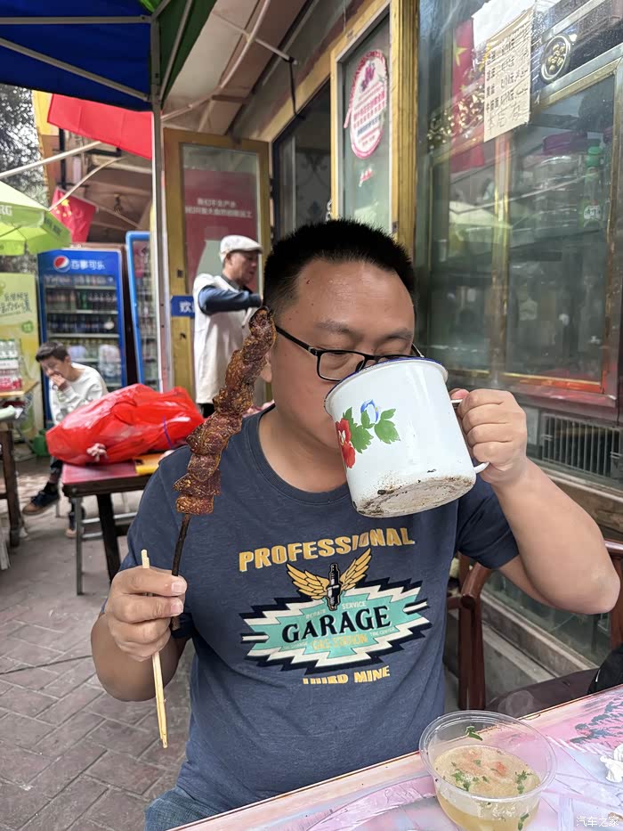 先到大巴扎后面的民宿一条街吃饭,这家店是磊哥的最爱!缸子肉汤特别鲜!