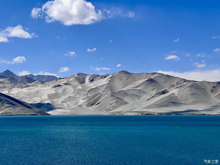 白沙湖位于喀什地区塔什库尔干塔吉克自治县的东南部,地处帕米尔高原,海拔3660多米,三面环山,背靠公格尔山西南的白沙山,是盖孜河的源头,主要由冰雪融化而成,水质清澈如镜,真的像一块宝石镶嵌在高原上,倒映着蓝天白云,美不胜收。