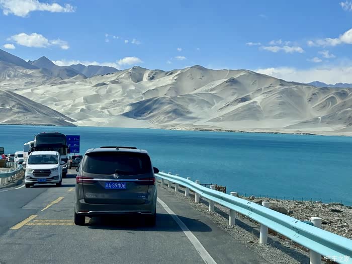 游览完毕返回到314国道前往慕士塔格冰川,再次经过白沙湖的时候已经开始堵车,庆幸来得早
