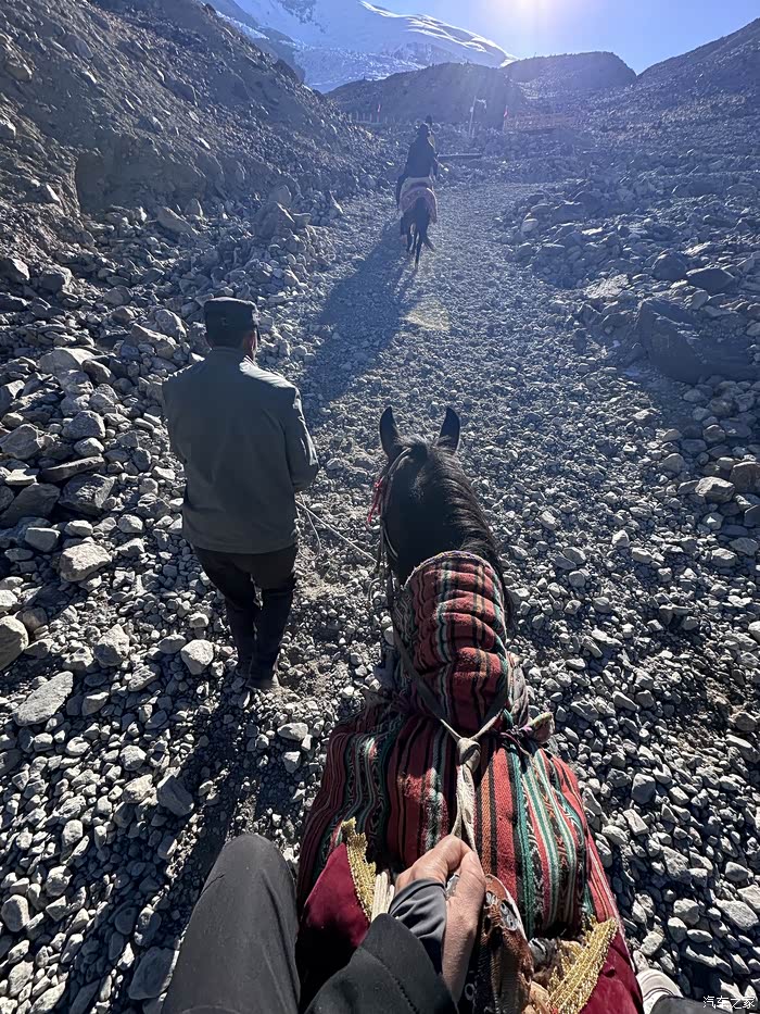 海拔4200米,下车需要翻过几个小坡才能到冰川脚下,呼哧带喘的爬完第一个坡心脏开始狂跳、头晕、恶心,找个避风的地方休息。磊哥表现优秀,爬上第二个坡给我去找马,想帮我圆冰川梦……找到了马,结果我上马后头晕恶心加上上坡角度大,一晃悠感觉心直打颤,叫停,止步,上车,返回,遗憾……