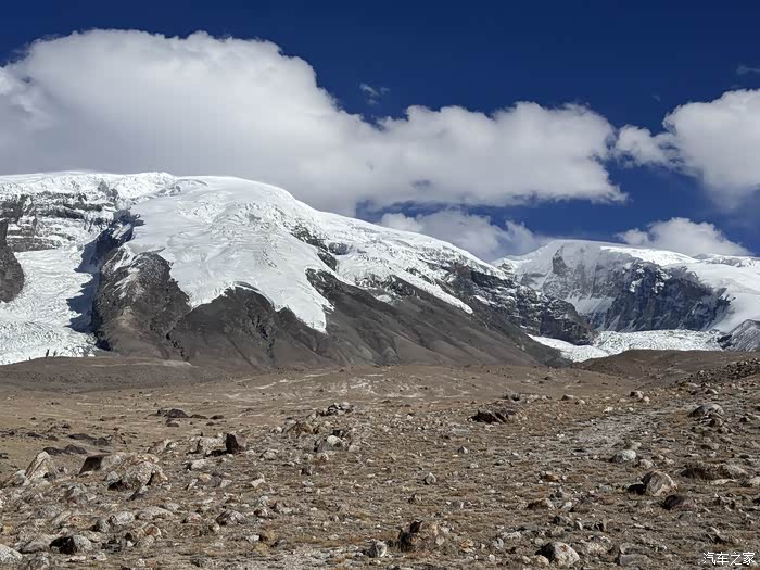 慕士塔格总共有四个冰川群,4号冰川经过开发变成了慕士塔格冰川公园。其他几座目前还是野冰川的状态,不允许游客自行进入。磊哥找了自驾路线,开始的车辙印儿很清晰,但越往后走越模糊,几乎都是断崖很难走,正犹豫要不要继续前行,隐约中发现前面冰川附近有车的影子,再一看,是很多辆车聚集在一起……但貌似不是我们这条线的终点,是另外一条……回忆是不是在哪个Y字路口走错……返回……走另外一条,很快就到了之前看到那些车的地方。
