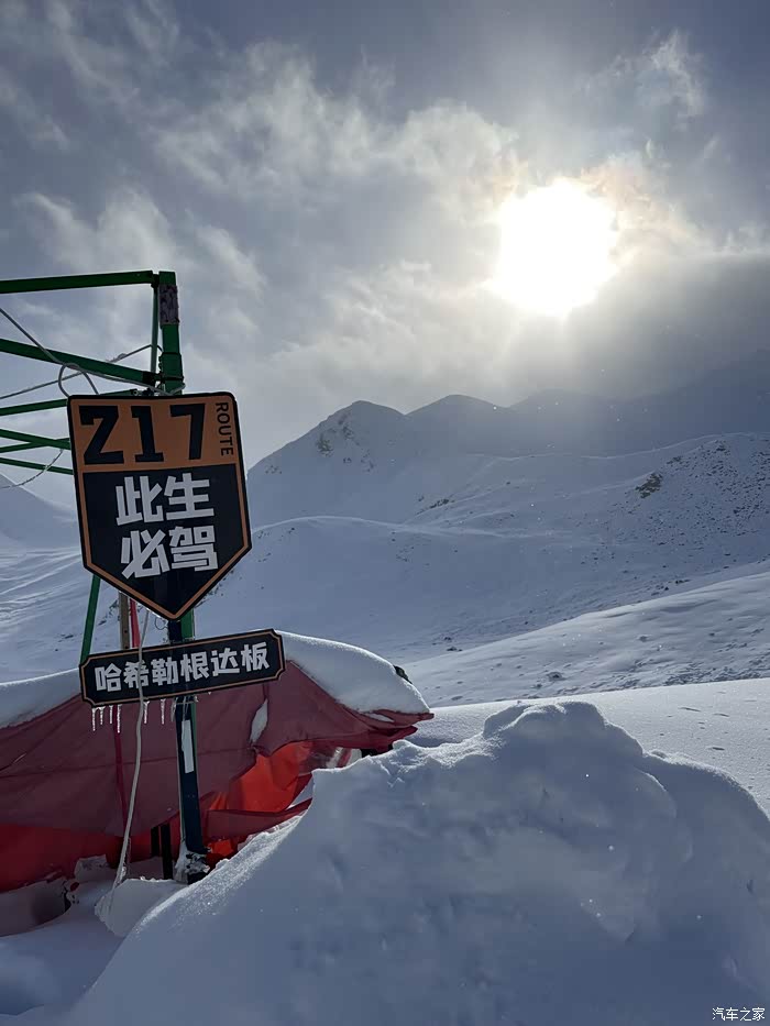 下午三点钟左右,遇到有信号的地方一搜,惊喜——哈希勒根达坂积雪清理完毕,恢复通行!好消息,赶紧切到217线,出发!