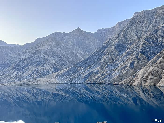 班迪尔蓝湖又叫下坂地水库,海拔3050米,湖水因为含有高浓度的矿物质,常年呈现出深邃的蓝色,湖面平静,与周围的灰白岩层相映成趣,真的像一大块翡翠镶嵌其中,有一种冰冷而神秘的美感,让人流连忘返