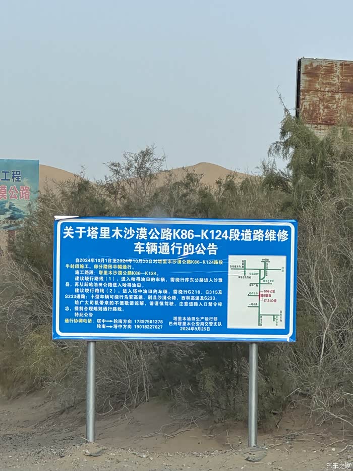 下午6点,到达塔中,在检查站被告知前方道路维修,7点钟路面会铺沥青导致不可通行,同时那段路没有信号,没有补给,建议我们在塔中休息,第二天一早再走……犹豫了一下,时间尚早,不想在沙漠里多做停留,退掉了轮台的酒店,心想走哪算哪吧……哪知道一路往前开,到了维修路段竟然没有封路,也没有当晚施工的痕迹,惊喜!顺利到达轮台,睡觉!
