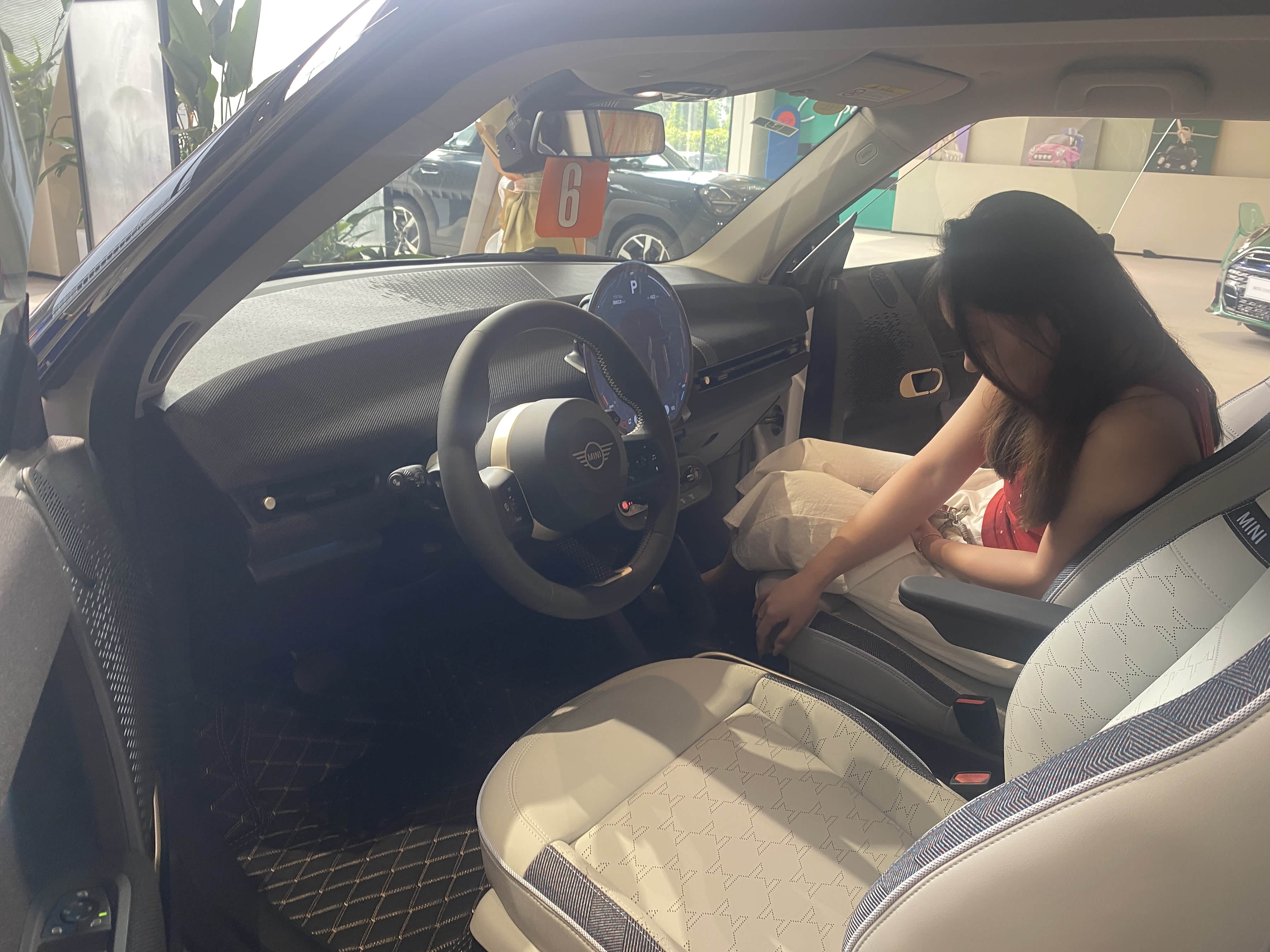 周六我们先去了吾悦广场看特斯拉,外观内饰都不合心意,直接pass,试驾都省了;然后溜达着还看了智己L6,外观确实好看,但女儿早就有着MINI情怀,再香也抵不过MINI的吸引力,于是第二天试驾电动MINI,女儿直接一见钟情,完全符合她的心意,当天就决定下定。