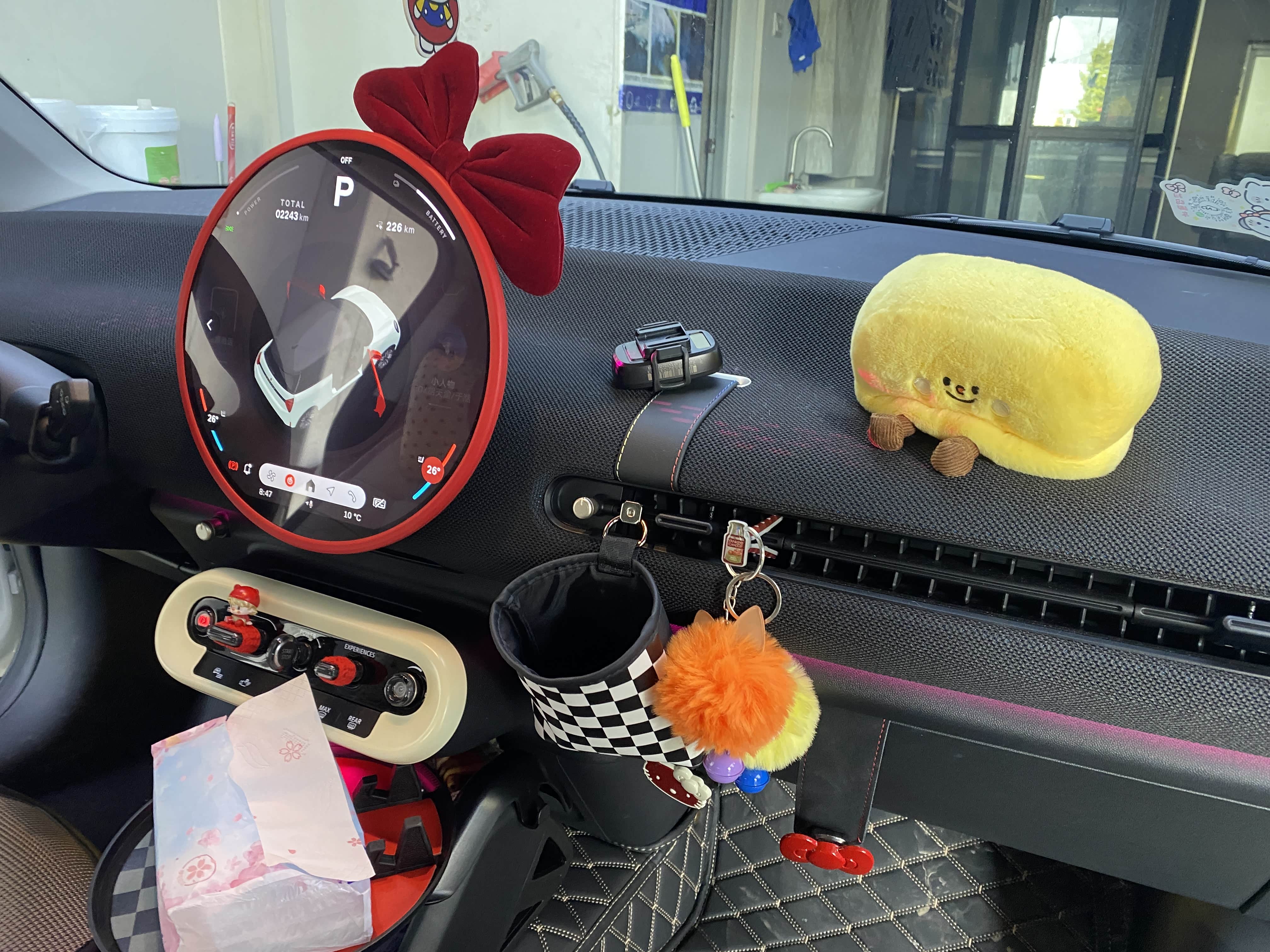 现在女儿每天开着小MINI通勤,非常的开心,把它装扮的也非常温馨可爱,外观提车后就去贴了个胡椒白加红顶的改色膜,跟原车的白色出入不大,省下了去车管所备案的程序。