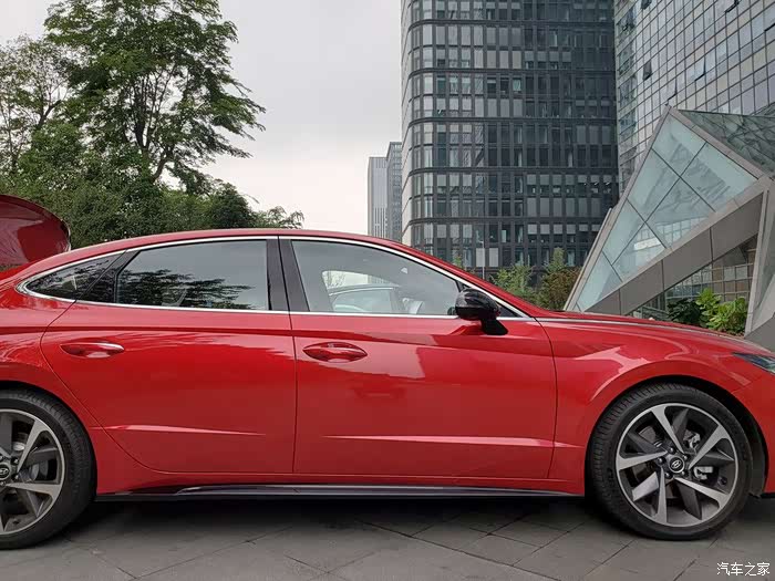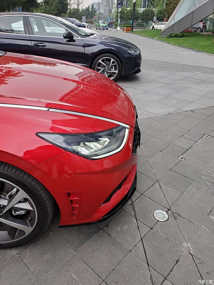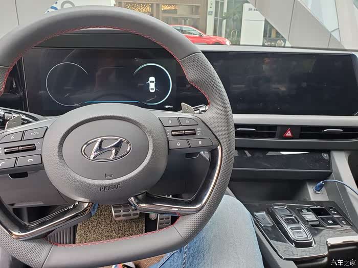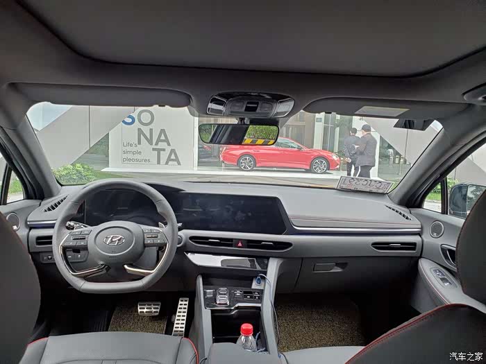 前脸确实激进,屁股后面有点思域的那种感觉,夜晚LED尾灯点亮后也挺赞,侧面的腰线、侧裙、双五幅大轮毂则有些性能车的意思。综合来说,外观这个见仁见智,但绝对有运动范,结合1.5T索纳塔的起始售价,感觉有点抢越级去抢思域等原有A级运动车客群的意思,毕竟同等价格,1860mm宽度,2890mm轴距的气场是A级车给不了。