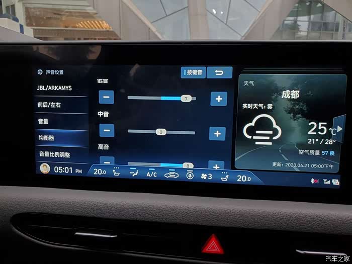 JBL音响效果不错,即便听自带的QQ音乐,低音的震撼及中高音也清亮有层次感,绝对不输于蜘蛛自己macan turbo上那套bose,更比TTS上那套混乱沉闷的bose好不少。另外自己调节到一个合适的模式更有惊喜;两块合二为一的12英寸大屏,有些奔驰E的味道,而且分辨率很高,UI漂亮。仪表盘打转向灯自动出现侧后方摄像,比菲斯塔的那个更人性化了。仪表盘下虽然USB接口只有一个,但有无线充电区域,日常手机放在此处刚好,这点无需吹毛求疵。