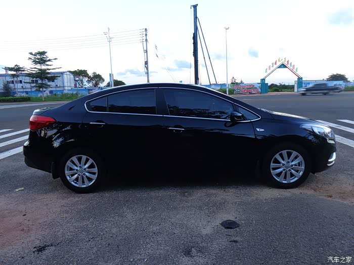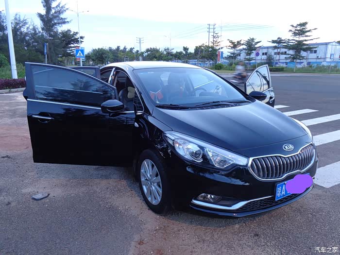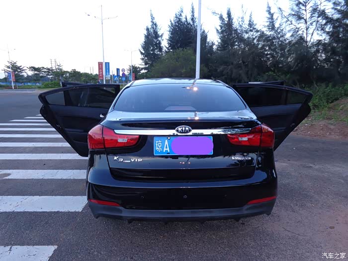 一不做二不休,周末立马跑去海口看车!起初是在网上看中标致301棕色款的,喜欢标致的狮子,价格也优惠,到店后,原来所说的优惠是一辆特价车,配置很低,姐夫也不怎么看中301。于是就去标致的隔壁4s店看看,它是起亚店,原本只是进店里看看,这一看却立马被k3霸气而时尚的外观折服,再向销售员询问价格,感觉优惠幅度还是挺大的,对比刚才的标致301,姐夫也很满意K3,接着就和销售员展开价格拉锯战……在一些细节优惠上没有谈下来,于是我和姐夫干脆就走出店,去看看其他车子,这一路上看了很多家,卡罗拉,轩逸,世嘉,朗动,桑塔纳,捷达,科鲁兹,还有英朗,在这些车子里面,英朗的价格也很实惠,配置也很高,可是店家说了,黑色标配现在没有车,要等到4月份!哎,现在才12月呀,于是决定也放弃掉英朗,抱着失望和迷茫,我回到县城……这样一等又是一周,周五那晚,起亚销售小哥来电,价格再谈,于是周末又立马跑去海口和店家谈,最终大家折中,谁都让一步,(之间的订车,办手续就省略不说了),于是起亚K3黑色自动GL款终于入手了,这一过程真是折腾,但也很有激动!下面就直接上图了!