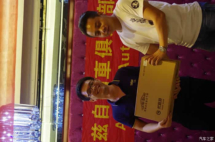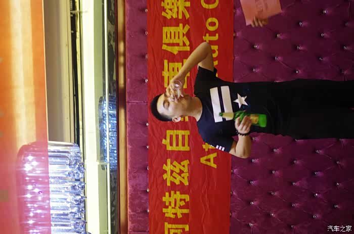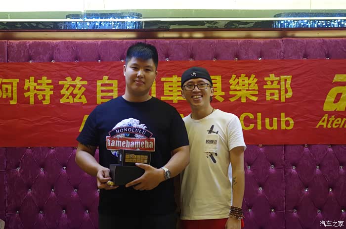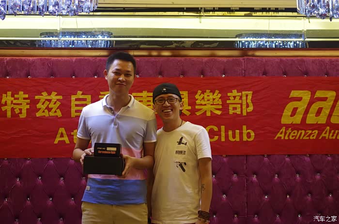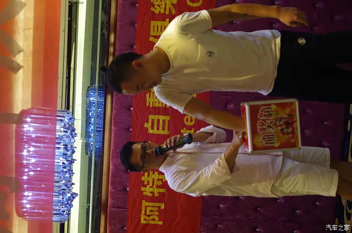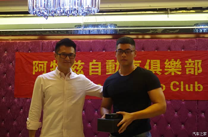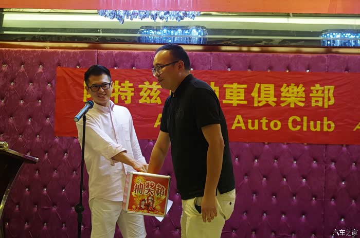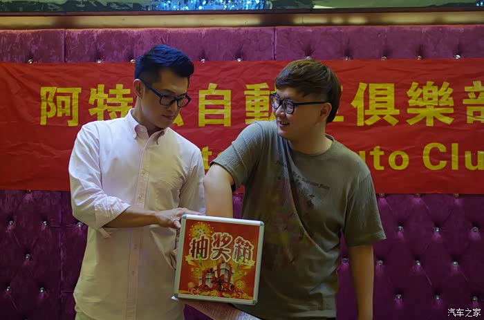 飛魚音響改裝工程的老闆 小蘇哥,為我們抽出他所贊助的 全場大最獎項 全車隔音一台份 價值三千六百大洋 最終居然被 小柯給抽走了 後來被大家拱著 要吹掉一瓶才能領獎下台