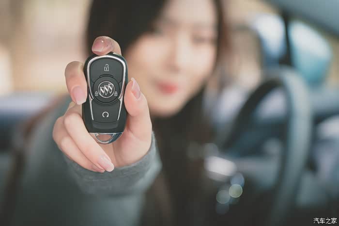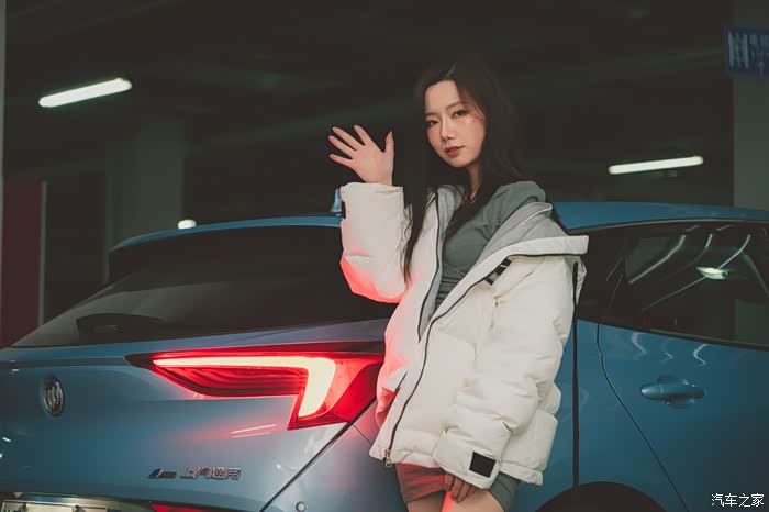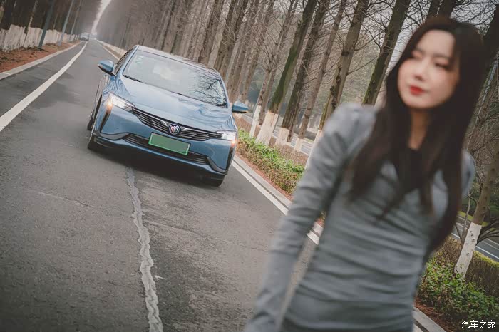 把别克微蓝的7字型的LED大灯点亮,显示效果在白天都很棒。