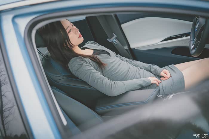 把座椅放倒前排空间就更大了,小姐姐表示要是卢卡不在,她甚至能在车里美美的眯上一会。