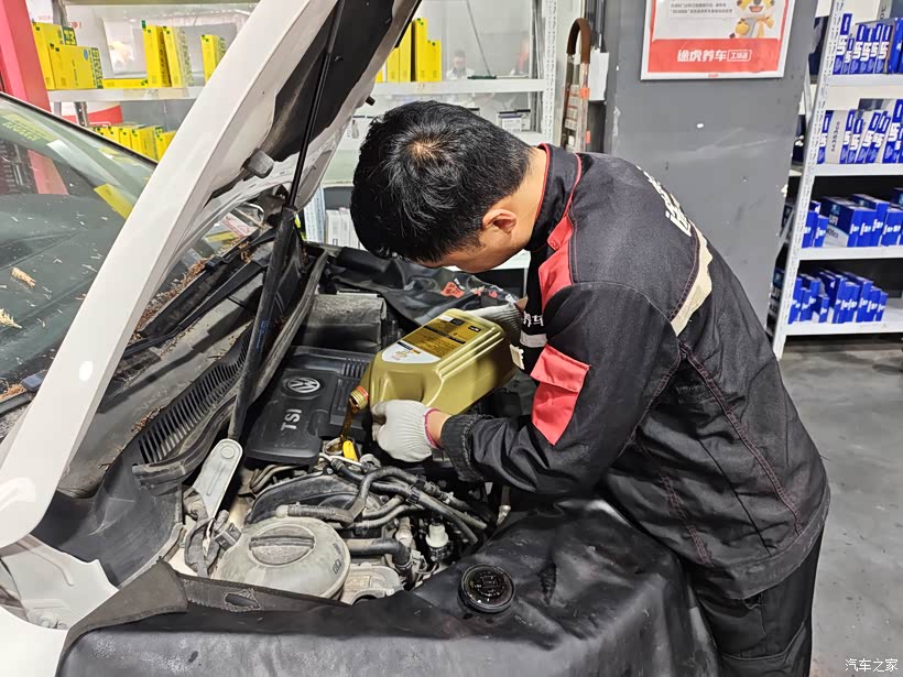 最后补一点机油,,此款发动机要求4L机油,我让他们加3.8L,但发现在刻度线下轨