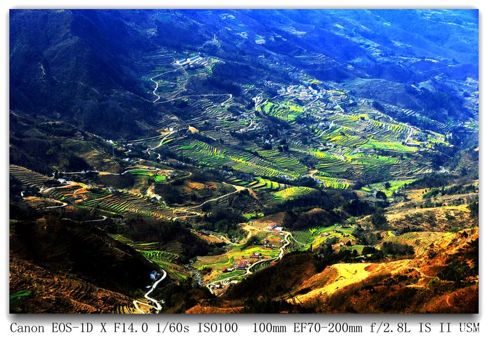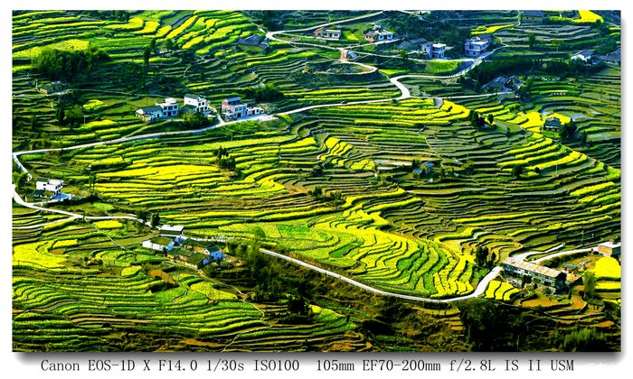 常听朋友们提起漩涡镇凤堰古梯田,驱车出发,上西汉高速,奔波百余公里前往一探究竟。不曾想,她古朴自然世外桃源般的隽秀风光的确让人流连忘返。绵延数十公里的凤堰古梯田,层层环抱着山脊,从山脚盘绕到山顶,大如曲池,小似新月,形状各异,各具特色,阡陌相连,高低错落,层层叠叠、风景如画。今年的中国最美油菜花节在汉中城固举办。油菜花是农户每家每户必种的农作物。所以当我们一路狂奔时,车窗外满是鸟儿叫、狗儿跑,遍地的金色花海和浓郁的油菜花花香。油菜花的美的不仅仅是它盛开的景色,它还代表了一种我们现代人对儿时怀念的情愫,一种亲近大自然的情怀。景色还是那景色,花儿还是那花儿,改变的只是观赏者的心境。与其说是油菜花色彩的迷人,不如说是现代人心灵上对自然景色的强烈向往和精神上对大自然的执著探寻。