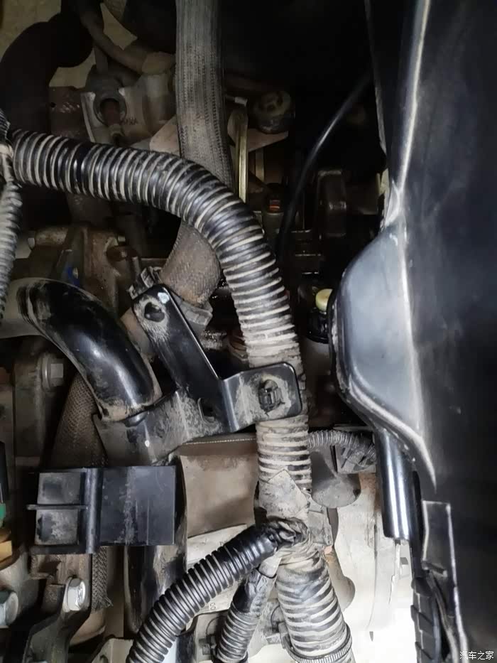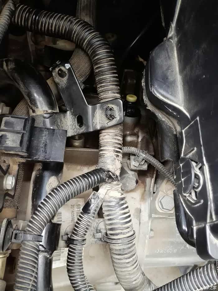 这两张照片是拆掉空滤器盒子后露出来的,大家看到中间下面位置的那个黄色的塞子吗,也许光线暗,就当是浅色的,现实中是黄色的塞子,提到这里是为了告诉大家,更换变速箱油从这里可以加注,我就是这么做的,由于光线不好,其实我还想说,这个塞子的作业是为了排出变速箱体内的空气,在沙漠家买了两瓶变速箱油加进去还担心少了,今天才看到有不少油在压力作用下被喷了出来集在变速箱机壳上,