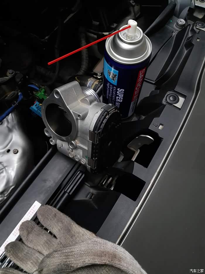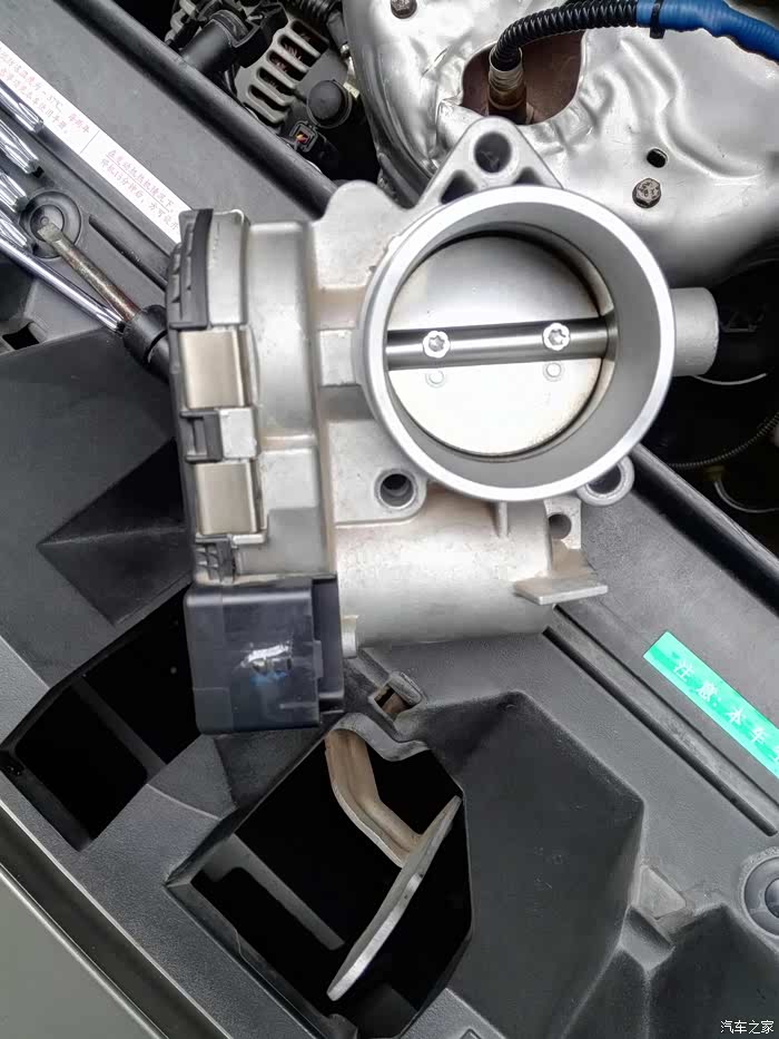 拆下空气滤芯了,才想起在论坛上交保养作业,只好从这里开始记录了,拆掉空气滤芯盒子,裸露出节气门就顺便拆下来一并清洗,我胆子大,直接是把电源线也拆掉,这样清洗方便,没考虑装上后初始化,从没做过,也许清洗比较勤,所以装上就能用,而且怠速很稳,也不高