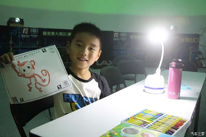 还有球形投影玩的,小朋友画画后,可直接投影到天幕上显示。其实最多算个亲子活动吧,请忽视我的汽车之家水杯。