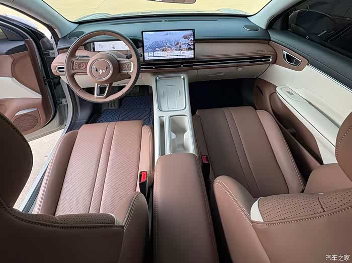 内饰我选的是暖棕色,搭配着白色显得很温柔。我很喜欢12.8英寸的中控屏,看导航、倒车影像很方便。