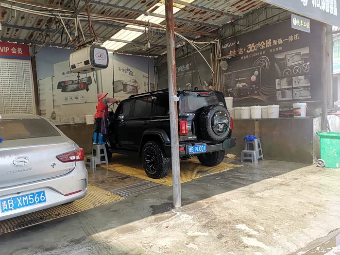 坦克300的车身达到一米九几,再加上换成285的轮胎,高度又增加了几厘米高度,每次去洗车,洗车的女师傅站在凳子上擦车顶的时候,显得都还比较费劲的,基本上够不了,只能叫男性的师傅来帮助擦拭。