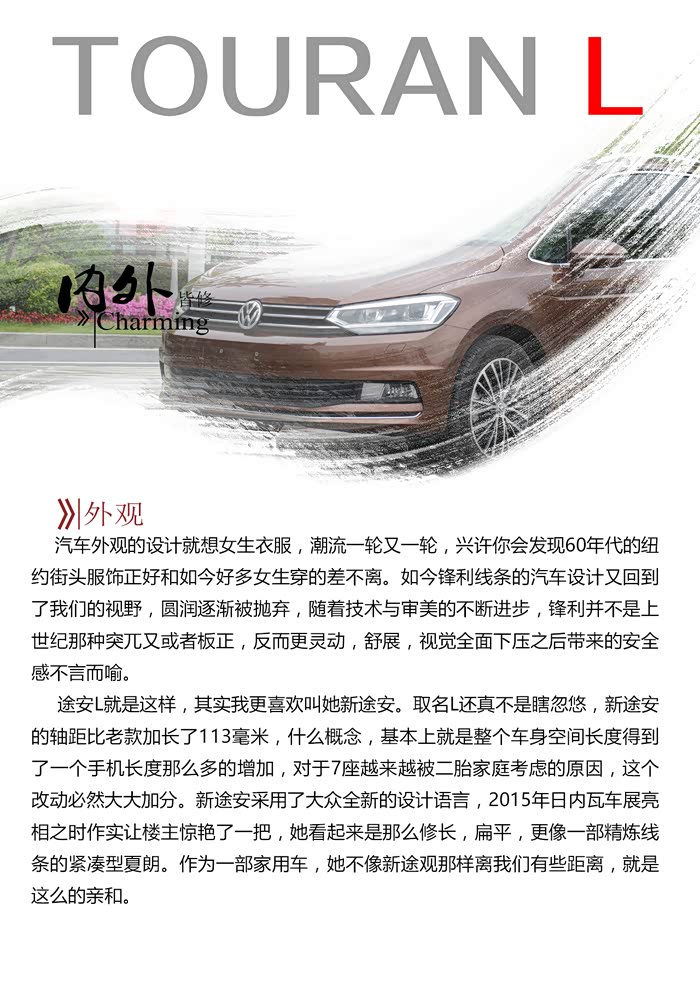 新途安一改圆润的车身线条,她已经不是我们认识的那个亲和舒适的家用典范车了么?让我们随着楼主的视角感受实用与颜值是怎么融合到一起的