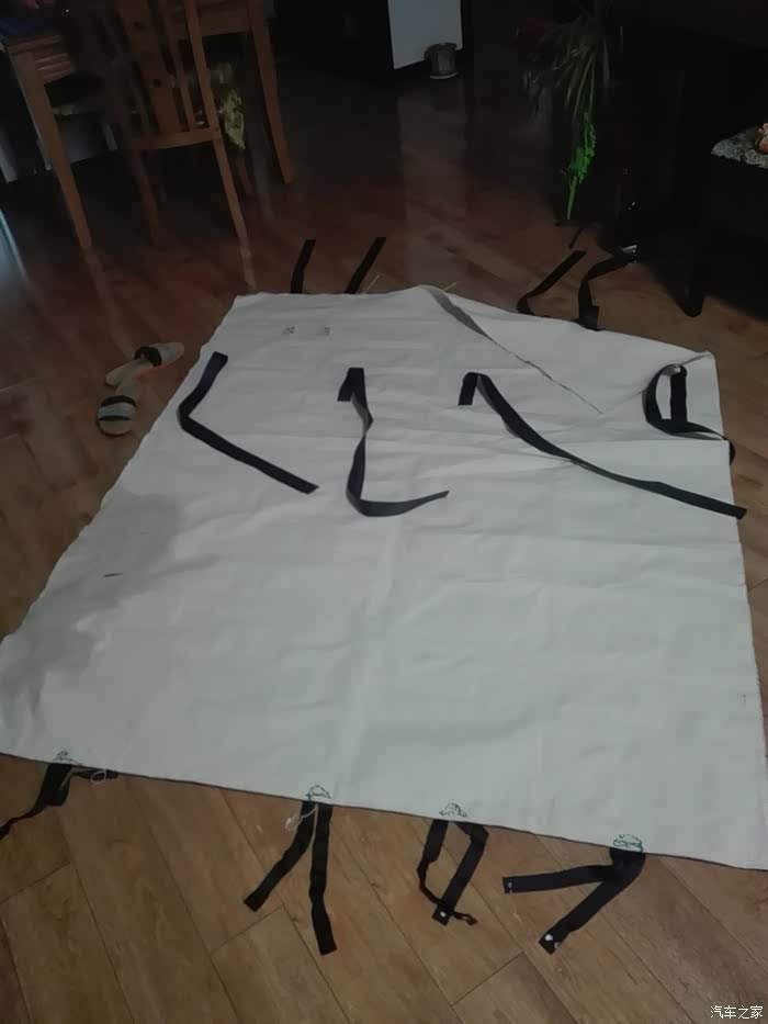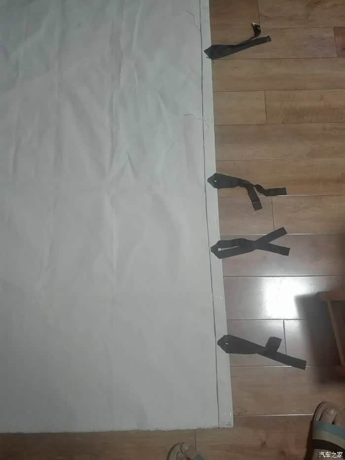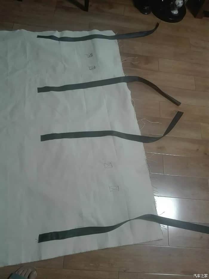 下部(后排座椅)子母扣4对,每对不用很长,公的长10CM母的短5CM就差不多,2比1。用来绑扎在后排座椅放到后露出的4个U形环上。穿过去拉紧粘上可以了很方便,我当时没准备子母扣,所以用的扎带。
