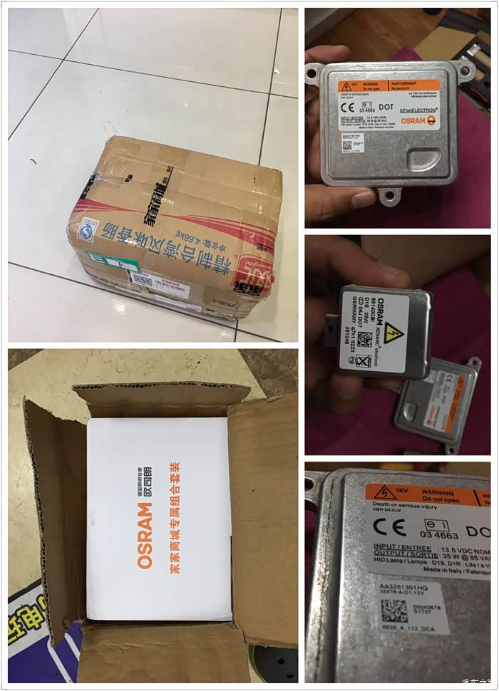 翼博的原版等有多LOW大家一定深有体会。远光像近光一样,近光像没开灯一样,夜晚总是被别人晃得看不见路。一直都在挣扎要不要换灯,值不值得换灯。直到上个月晚上跑高速堵车,被别车晃了好几个小时后,终于决定要换疝气灯。逛了很多论坛,看了很多帖子和评论后,最终在汽车之家的家家商城购买了 欧司朗OSRAM进口氙气灯+进口安定器+POWERLIGHTING透镜 这个组合套装。