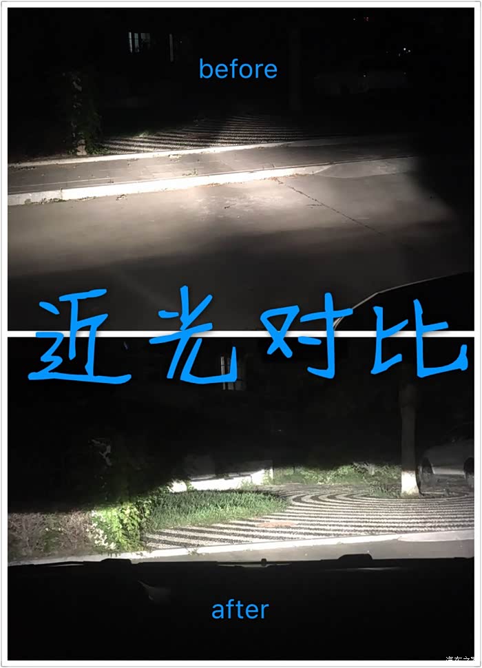 今天去的比较晚,回来的时候天已经黑了,近光铺装切线 效果很好,一直没有使用远光,要合理使用远光灯,注意行车安全,专治远光G。