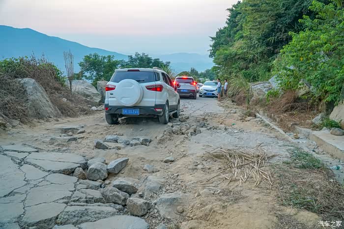 上山的途中,有几米路严重破损,来到烂路这里就开始出现堵车,除了司机,全员下车小心翼翼通过。动力小,底盘低的车,通过有一定的难度。我的欧蓝德还是不赖的,来回都很顺利的过了。回程看到一辆汽车,陷在烂路的坑里动弹不得,踩尽油门也只能空转。大家经过这里务必小心。