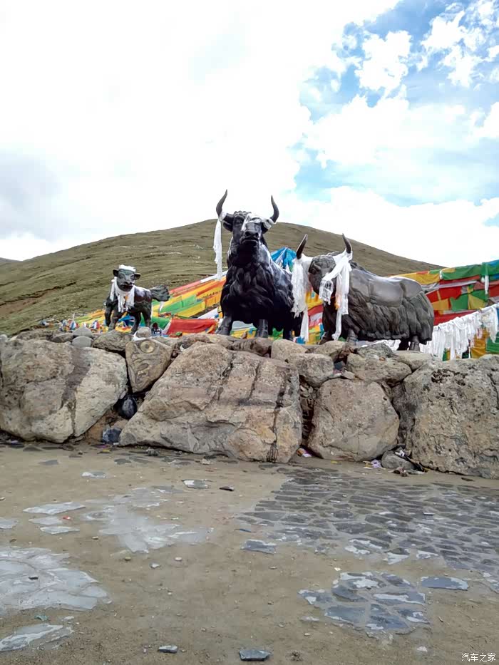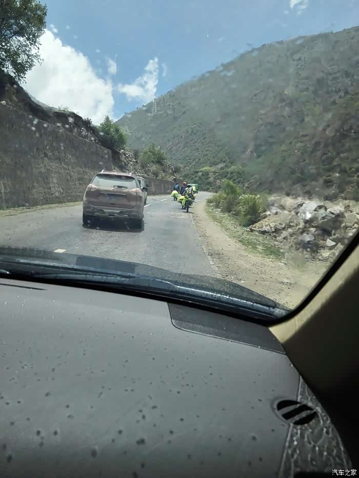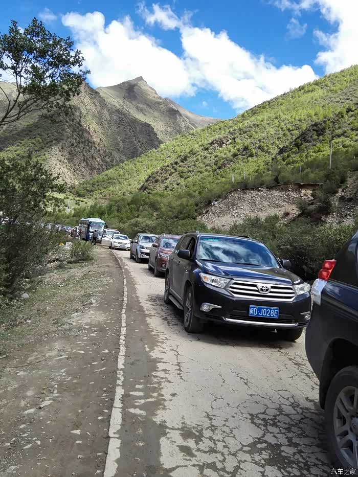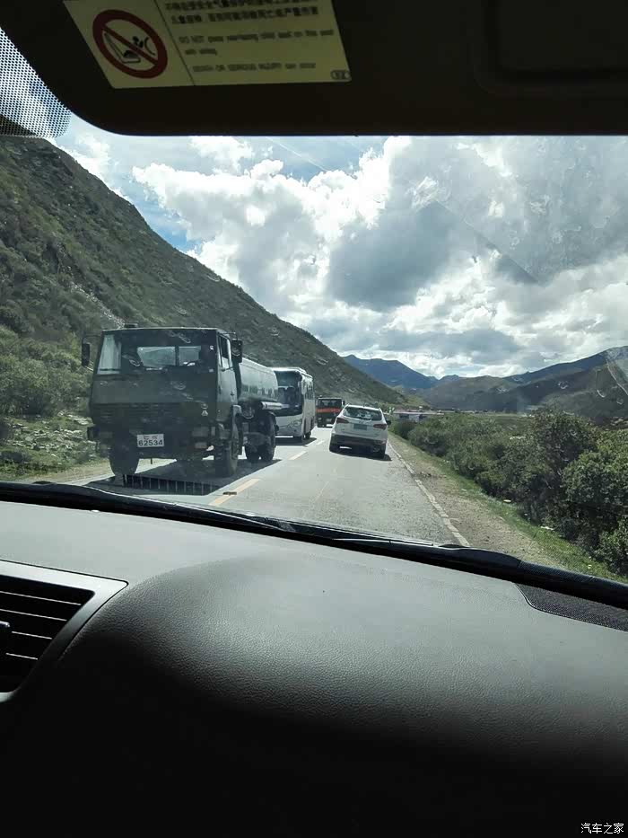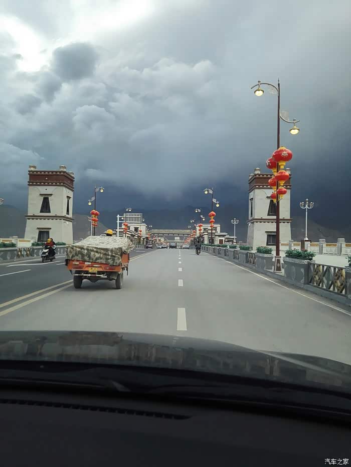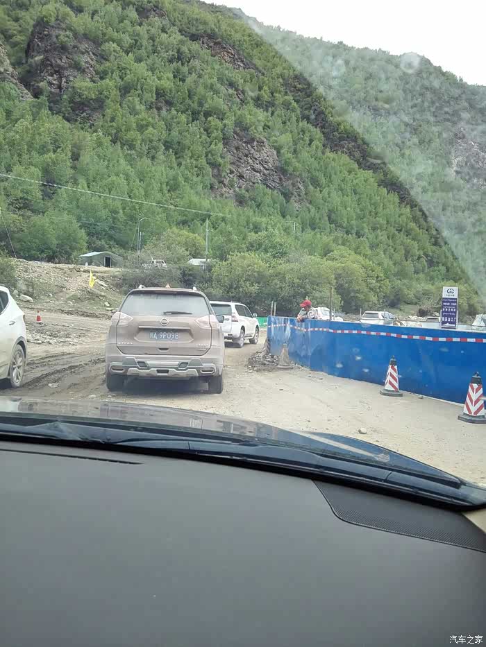 出了古城,开始下大雨,已是中午,我们囫囵的吃了点东西,午休了20几分钟,继续前行。离拉萨越来越近了,车辆也越来越多。道路依旧不平坦,一路都在建高速,尘土飞扬,车窗都不敢开,我们仍旧灰头土脸的。时不时还堵上了,一堵个把小时。