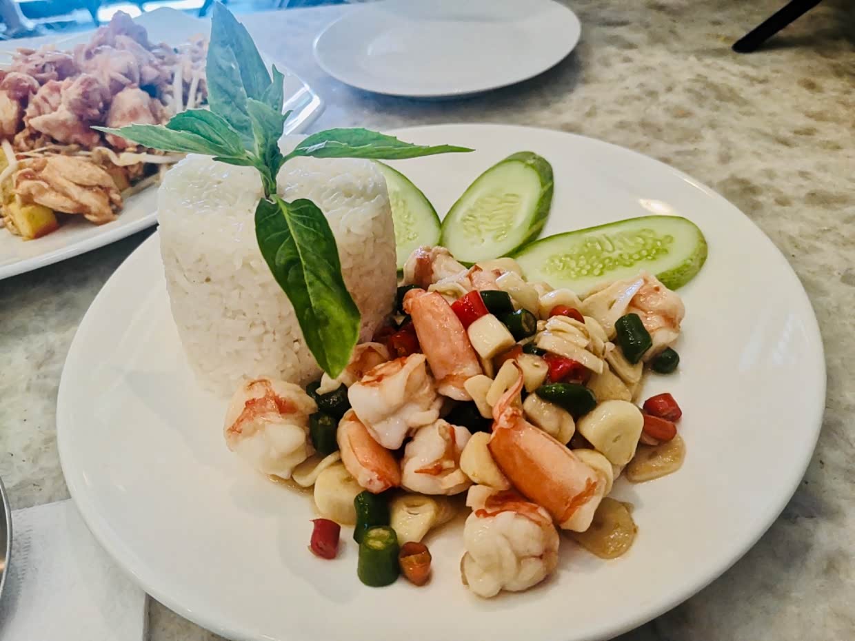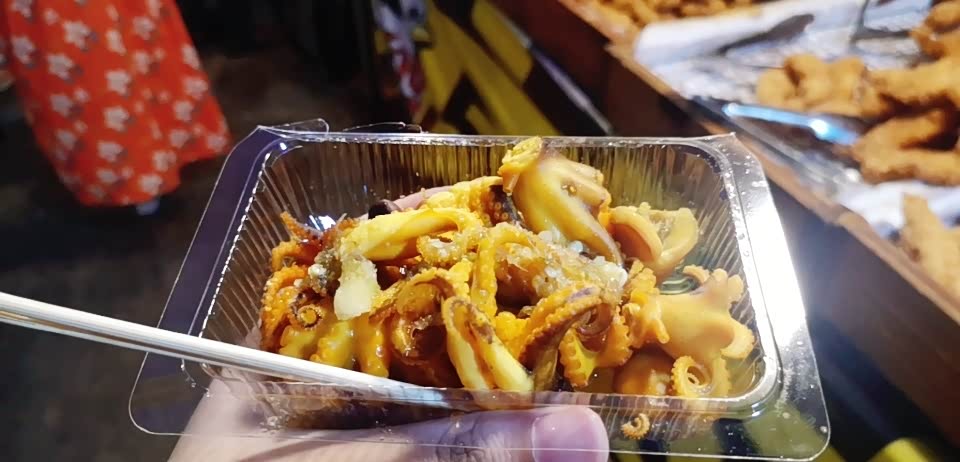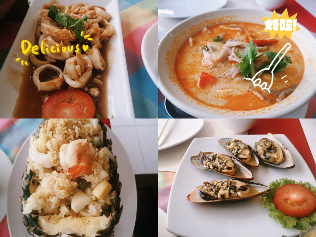 作为一个“不地道”的美食家品尝了各式小吃,包括香蕉煎饼、鱿鱼圈、咖喱大虾和菠萝炒饭等,最后实在是吃不下了,还有好多没吃到,整体风味极为契合我的口味。好吃不贵,用的也都是真材实料,而且基本都有中文标识,不怕不认识。