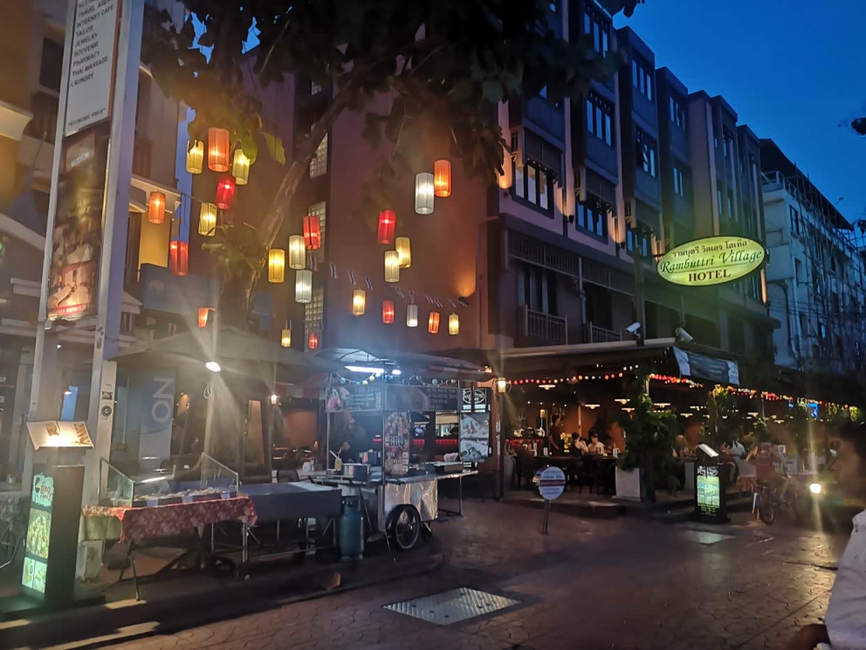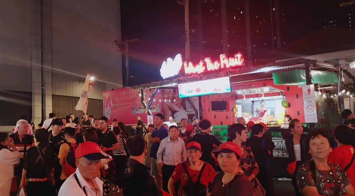 晚上我前往泰国拉差达火车夜市游览,夜市灯火通明,人头攒动,每个摊位前都散发着诱人的香气。