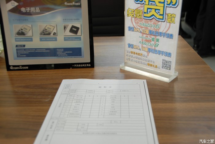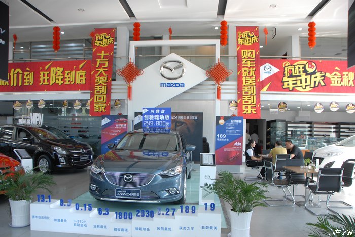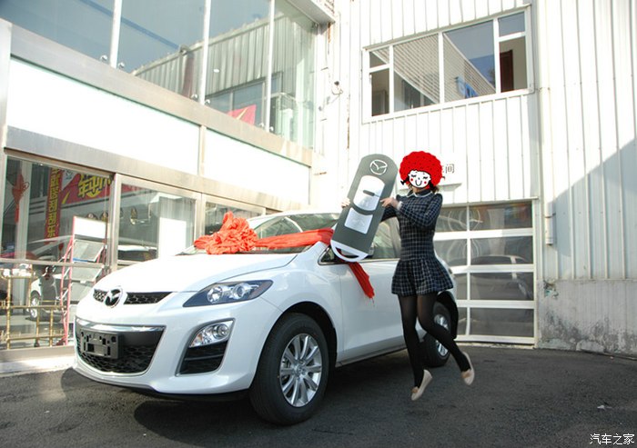 ,亲自为我的车扎红花。订车时,我还问她,我提车时能不能让我把过程照下来,因为我想发帖。提老马6时,我就傻呵呵的到那,立马乐的屁颠屁颠的就直接把车开走了。结果也交不上个提车作业啥啥的。这次,我有经验了,提CX-7的过程,我一定得好好的记录下来!做个漂亮的帖子!加上霍版挺不容易的,还一直尽职尽责的游说我们打算提车的车主上作业,上用车心得分享,提高论坛的人气。这次,也算支持一下霍老大的工作。先拍好版主的马屁,以后才好混嘛!