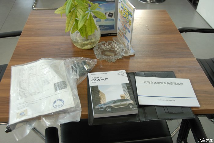 老马虽好,但开了7个年头也应该换车了。换车时我都没考虑其它的品牌,还是马自达。第二辆车,想换SUV。这样就选中了CX-7,我也没纠结,我也没对比,我就直接拿下了,2.5 豪华,售价22.98万,排量、价格都是符合我的要求。二话没有,直接上华达订车。因为我是他家的老顾客了,这次换车又换了CX-7,嘿嘿,待遇超好,销售经理(女)亲自接待我