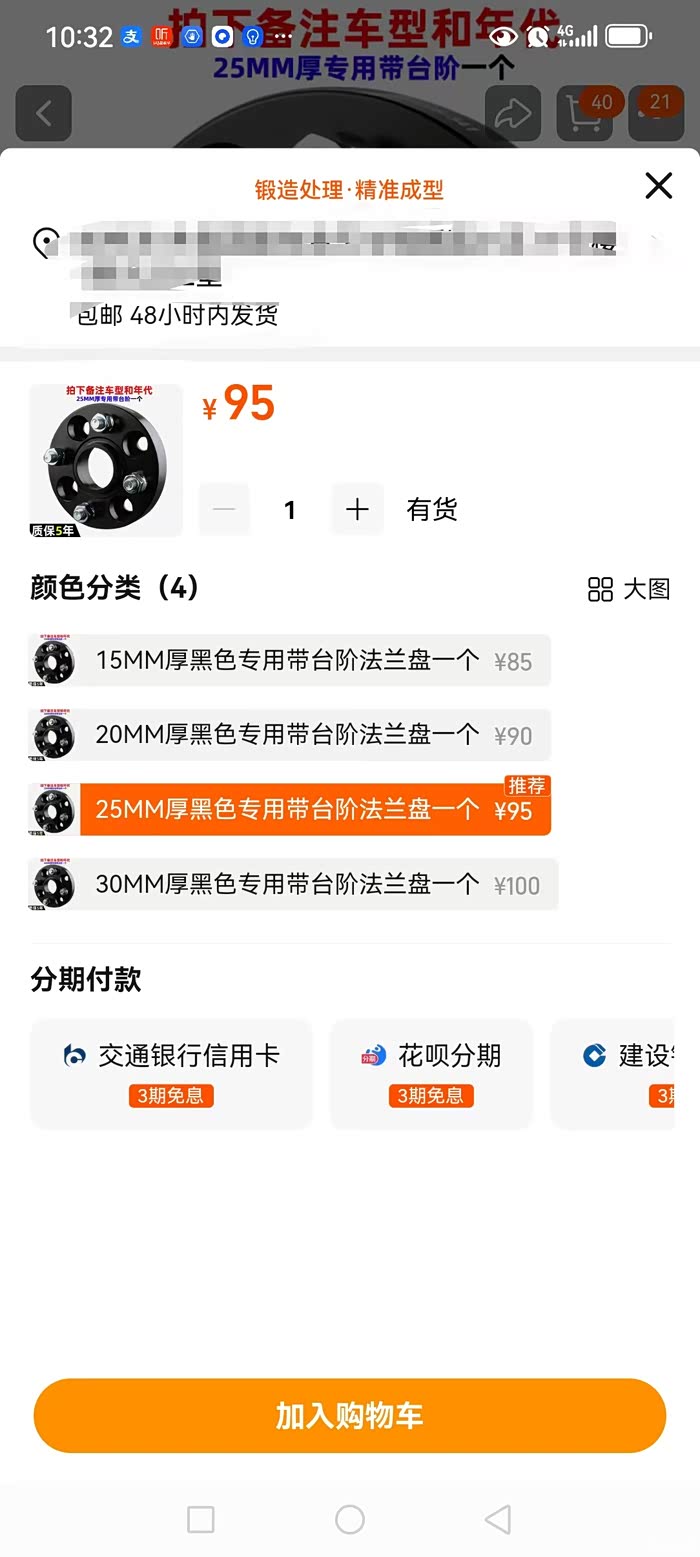 我看某宝上有卖适合五菱迷你车的法兰盘,你选的是25MM?