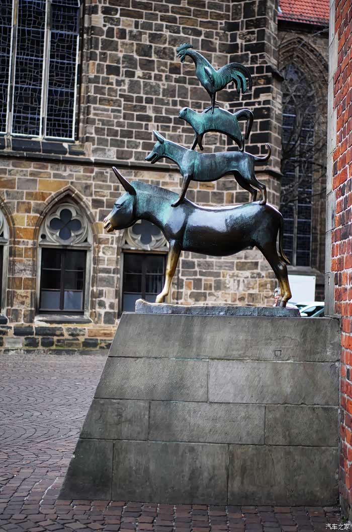 Bremen 不莱梅,也是德国汽车出口重镇,在格林童话中,四只动物组成的不菜梅乐队遊行于市中,还有养猪人的一幕,也在闹市中出现。