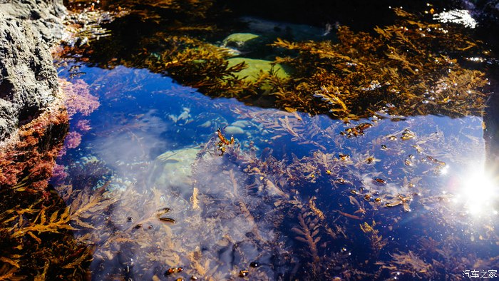 海边岩石的高地构筑起一个个颜色斑斓的水池