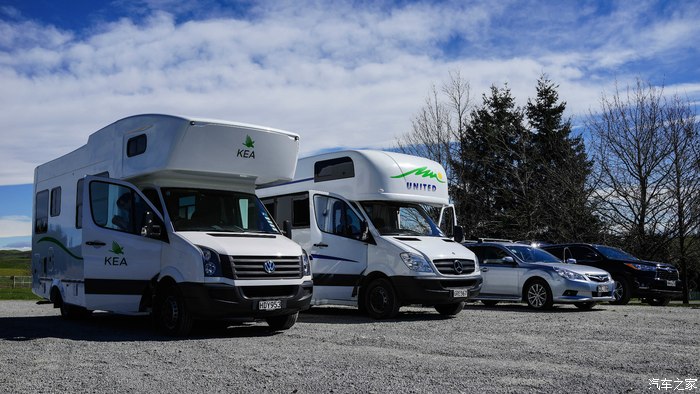 整个车队由三台RV房车(大众、奔驰)与一台SUV(丰田)和两台WAGON旅行版(斯巴鲁)组成。