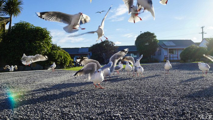 房车营地的鸽子们很欢迎我们来到凯库拉,也包括我们带去的薯片。