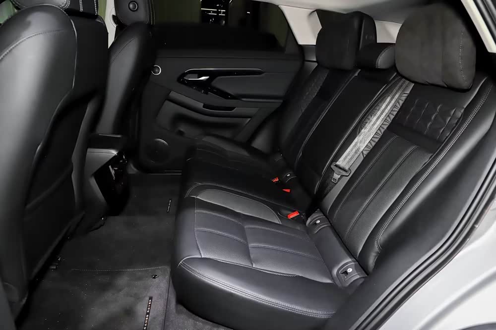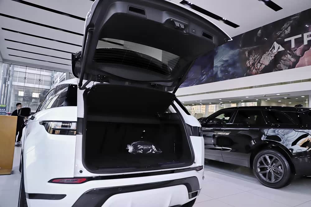 车尾设计饱满且线条圆润,细节之处不乏精致。包括与车头相呼应的细长尾灯组,以及采用贯穿式设计的黑色饰板,上方路虎车标经过黑化处理,下方还配备了大面积护板。整个车尾散发出一种大气而稳健的气息。