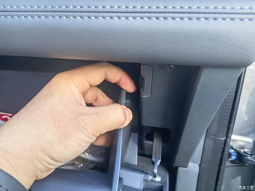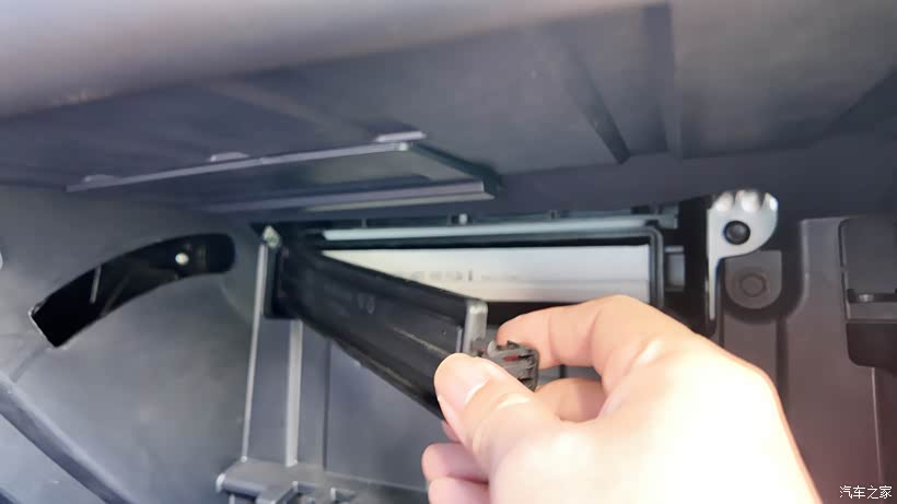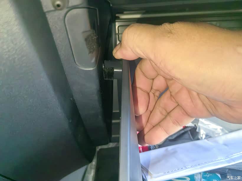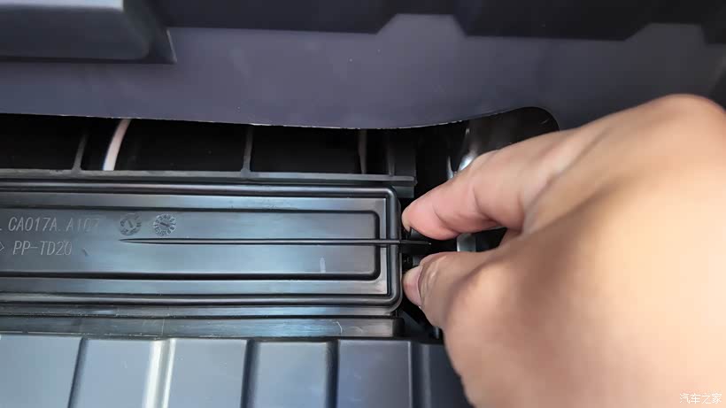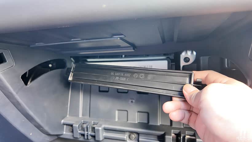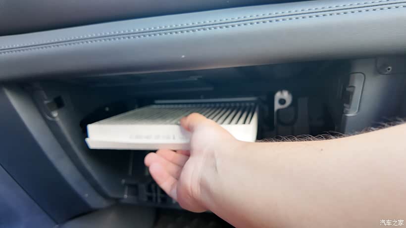 找到并打开滤芯盖板: 取下手套箱后,一眼就能看到一个长方形的、横向的塑料盖板,这就是空调滤芯的“家”。盖板一侧通常有卡扣,用手轻轻一捏,就能把盖板取下。