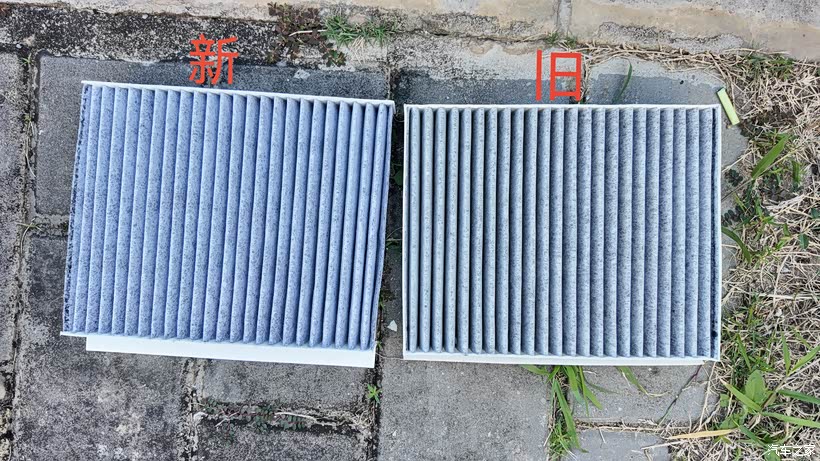 取出旧滤芯,对比新旧: 旧滤芯就静静地躺在里面。把它抽出来的那一刻,我惊呆了——上面布满灰尘,颜色发黑,和雪白的新滤芯形成了鲜明对比!难怪空调有异味,它的过滤功能基本已经失效了。