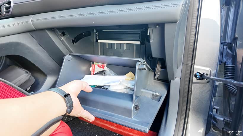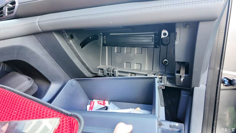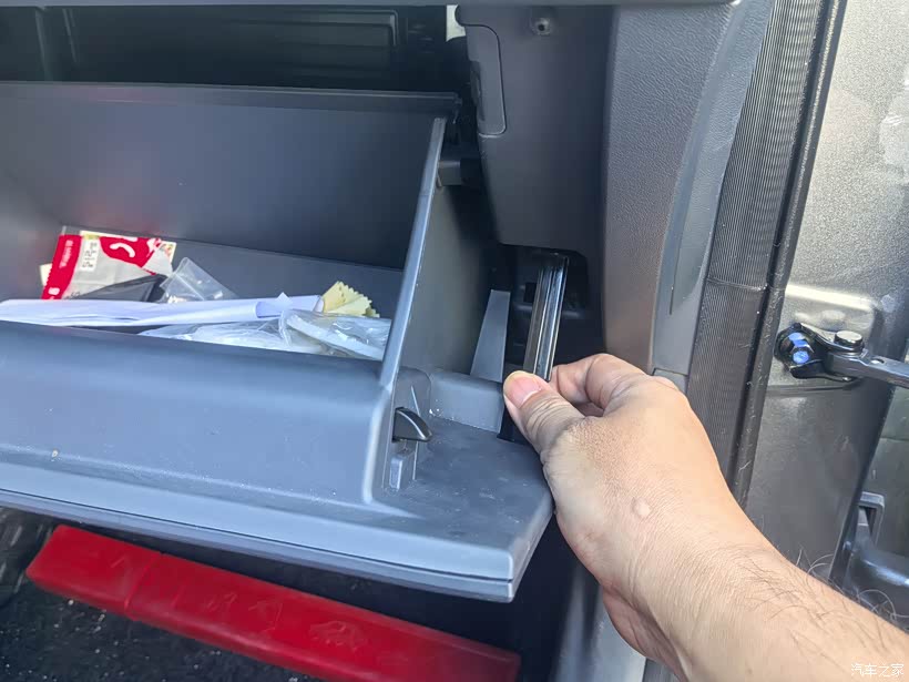 清空与打开手套箱: 首先,清空副驾驶手套箱里的杂物。然后,用双手扶住手套箱的两侧,稍微用力向中间挤压,同时向外拉,整个手套箱就能顺利地卸下来了。这一步是为了腾出操作空间。