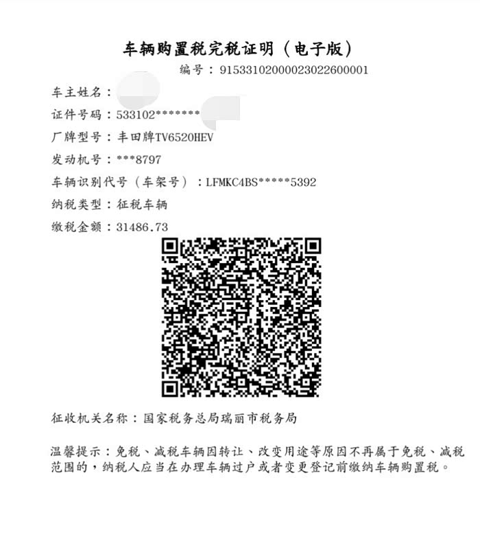 购置税上的有点多,31486元,很大一笔了。很心疼。相对于新能源车,免税政策真是特别香。这个油车混动又没有税收上的政策,这个时候才感觉新能源确实是被国家重点扶持发展的。