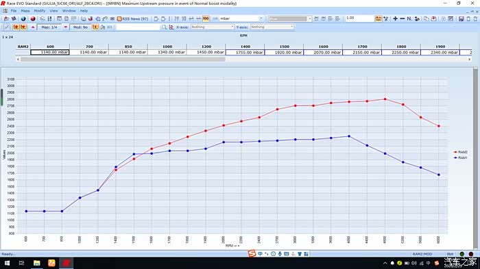 那么,下面我们来举个栗子,giulia200/280原厂程序涡轮压力对比,解析软件是RaceEVO