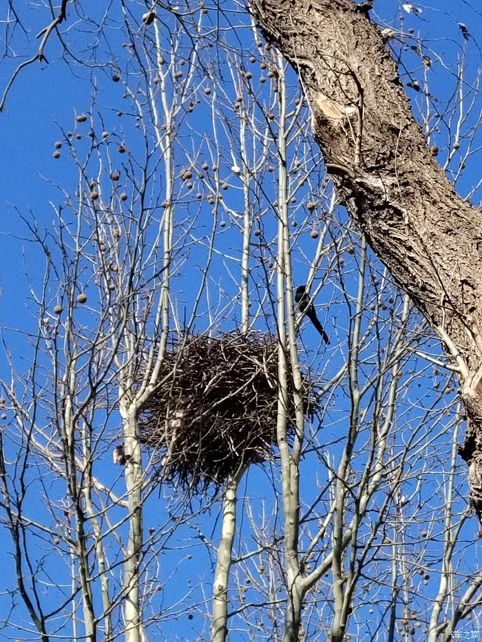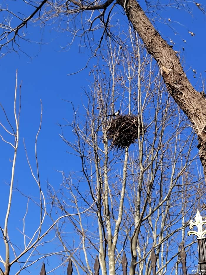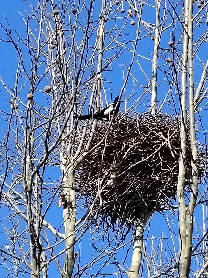 山庄大院里,有不少大树,就引来喜鹊儿在上面做窝。白天没事,看到拍了一些。据说喜鹊筑巢是很好的事,在网上查了一下,真的很好,寓意吉祥,幸福美满。