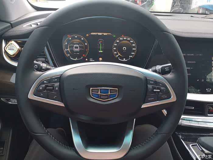 4986*1861*1513使得GE整个车身显得特别的大气稳重,侧面看上去车身很长,17寸的轮毂在不和顶配对比的情况下也是显得非常协调,当然耀智版之上的18寸轮毂配上米其林更酷了,前脸家族式的水波涟漪中网造型很是凶猛,侧面看上去很像鲨鱼嘴,还有全系标配的LED大灯组,夜间照明不错,省去了后续改装的费用。只是ACC模块探头在侧面没有以前博瑞居中的那么好看了,尾部造型很显成熟稳重,双边单出排气管都是真的,配的上最美中国车的称号。